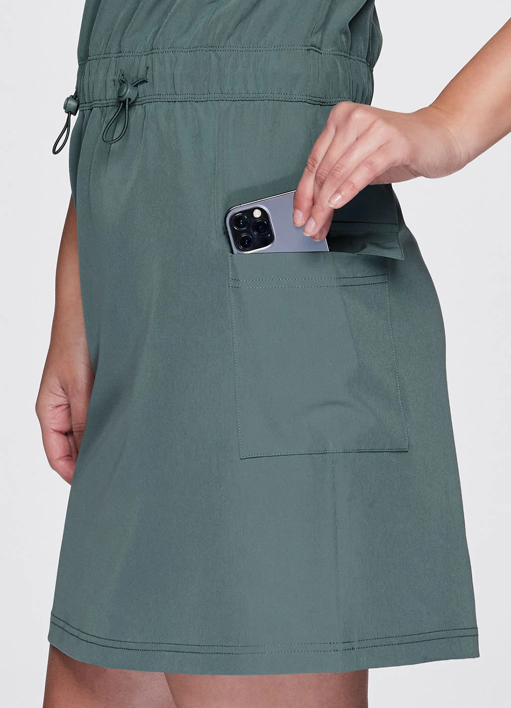 Our Malden Cargo Dress will have you looking and feeling your best all summer long. This short sleeve dress is constructed from smooth, stretch woven fabric that's designed to wick sweat and dry quickly so you'll stay cool and comfortable during any activity. An elastic waistband features bungee drawcords that you can adjust as desired for the perfect fit, and an open keyhole in back with button closure provides enhanced breathability, Complete with flap cargo pockets for convenient storage of your valuables, you can take this tee dress from the airport or tennis courts to brunch with friends.